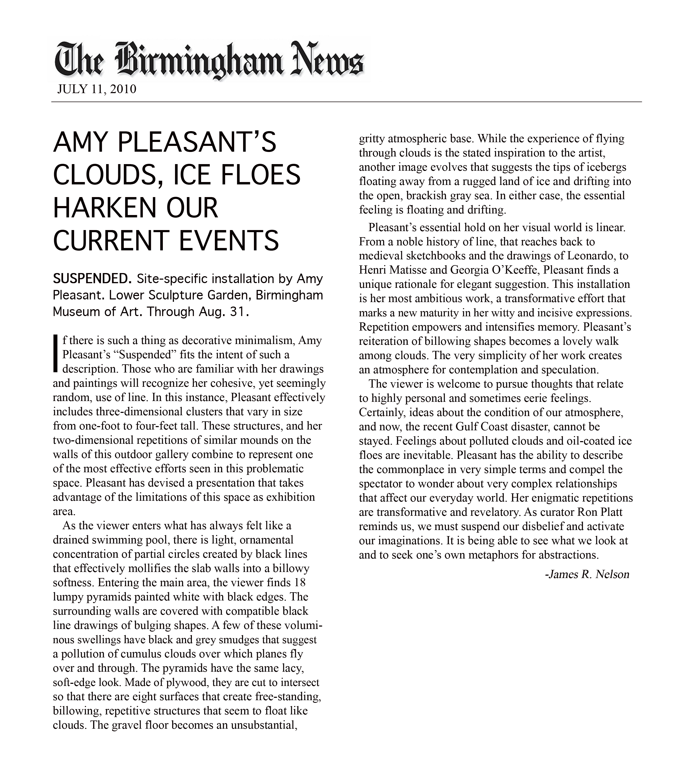 Amy Pleasant's Clouds, Ice Floes Harken Our Current Events James R. Nelson, The Birmingham News