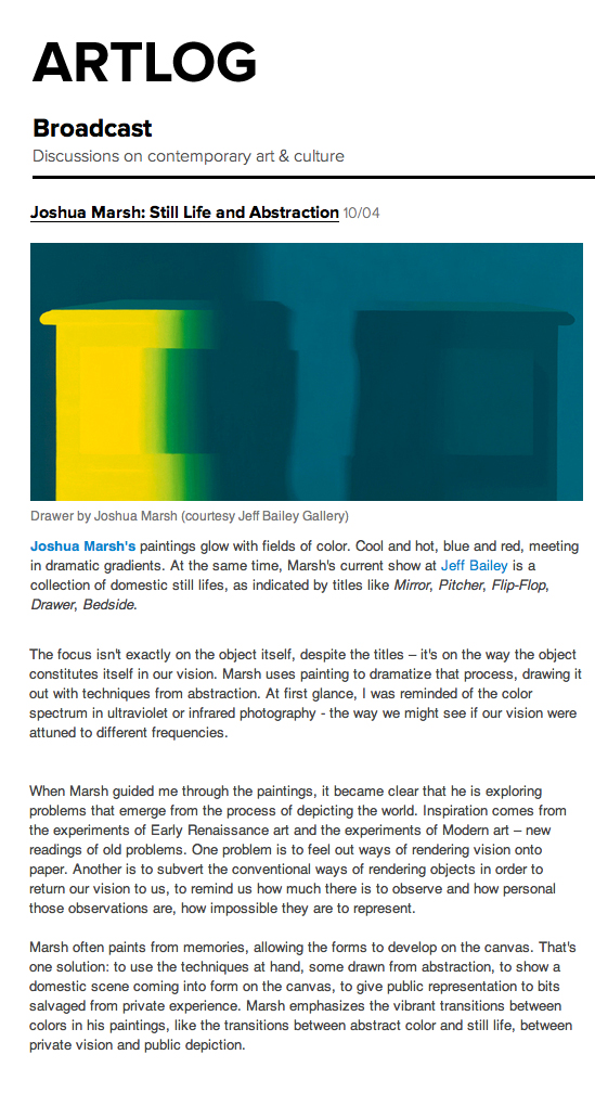 Joshua Marsh: Still Life and Abstraction ArtLog, October 4, 2010