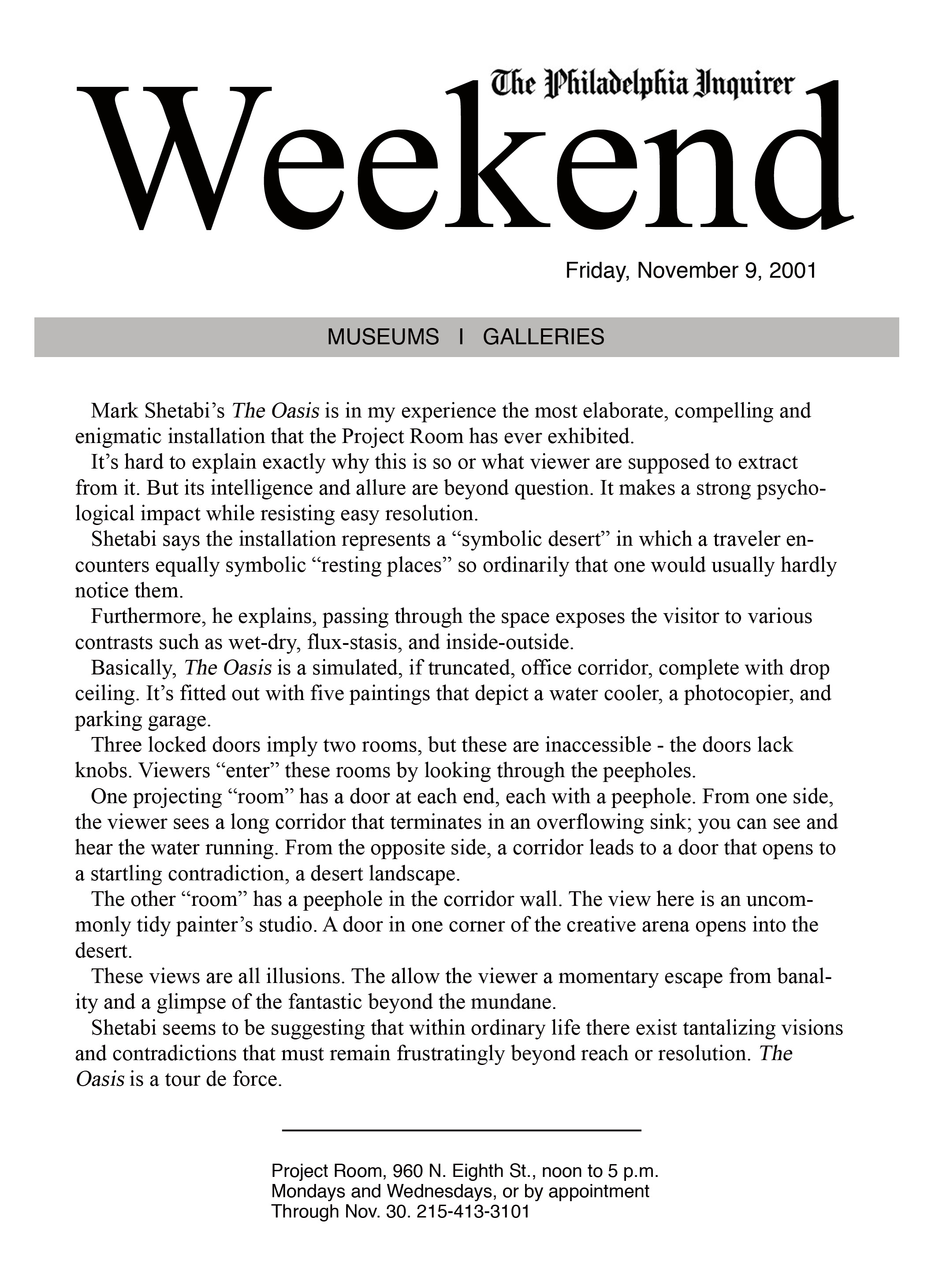 The "Oasis" that Offers Tantalizing Visions Edward J. Sozanski, The Philadelphia Inquirer