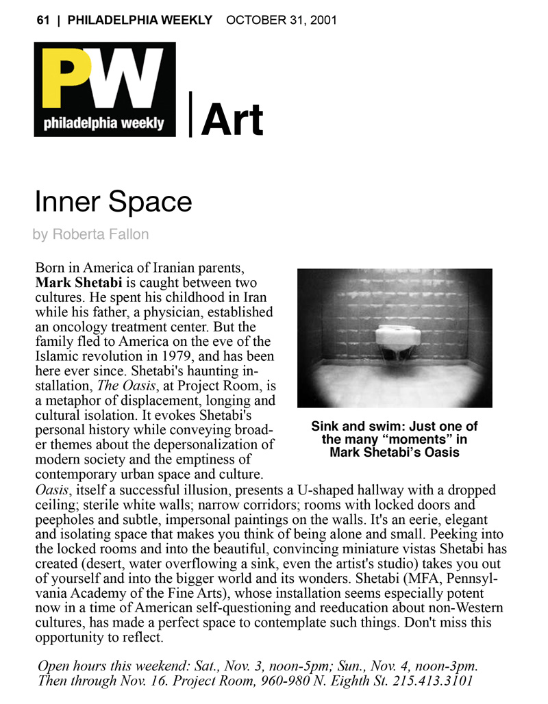Inner Space Roberta Fallon, Philadelphia Weekly, October 31, 2001