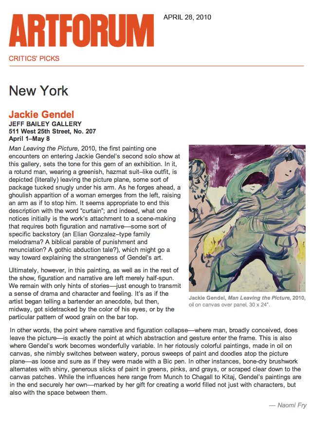 Critics Picks: Jackie Gendel