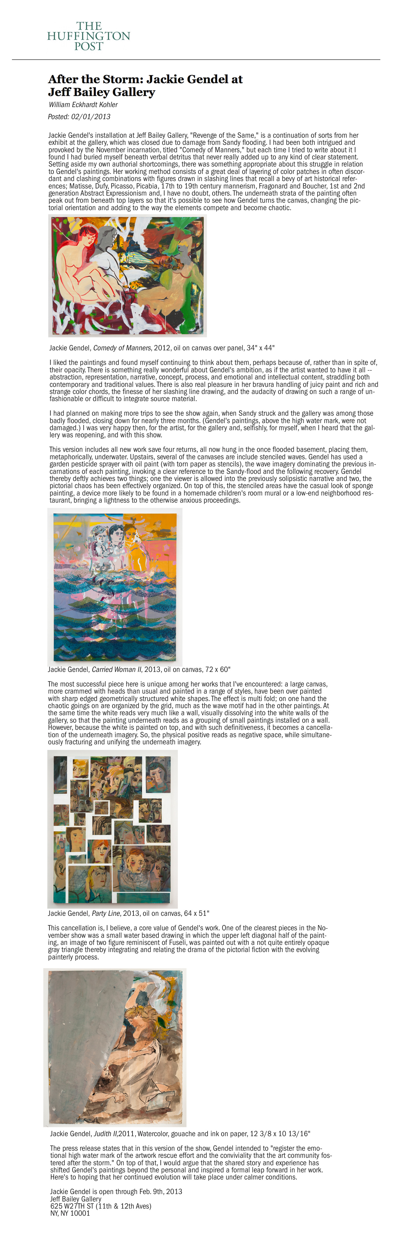 After the Storm: Jackie Gendel at Jeff Bailey Gallery