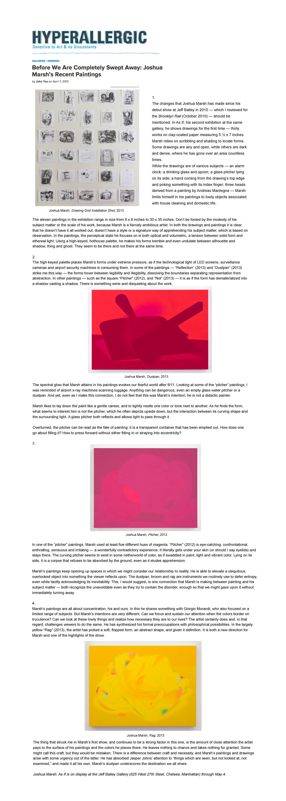 John Yau, Hyperallergic, April 7, 2013