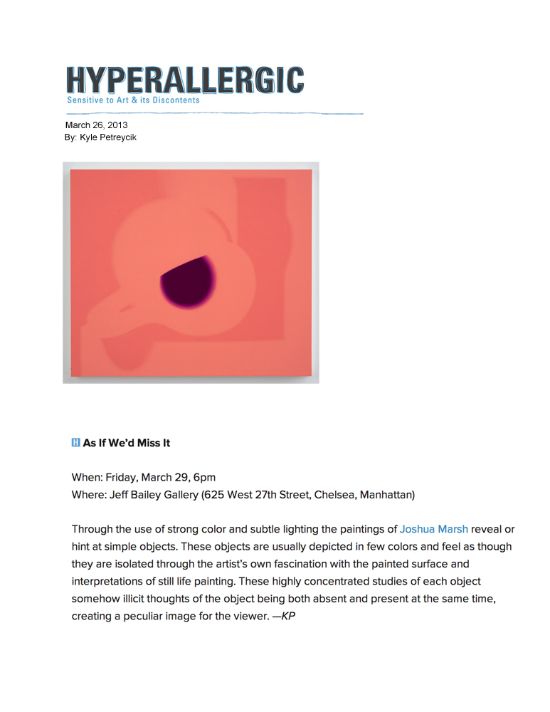 Kyle Petreyik, Hyperallergic, March 26, 2013