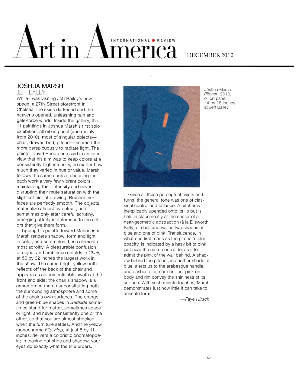 Faye Hirsch, Art in America, December, 2010